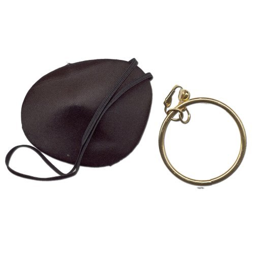 Includes a basic black eyepatch and faux gold hoop earring (not for pierced ears).